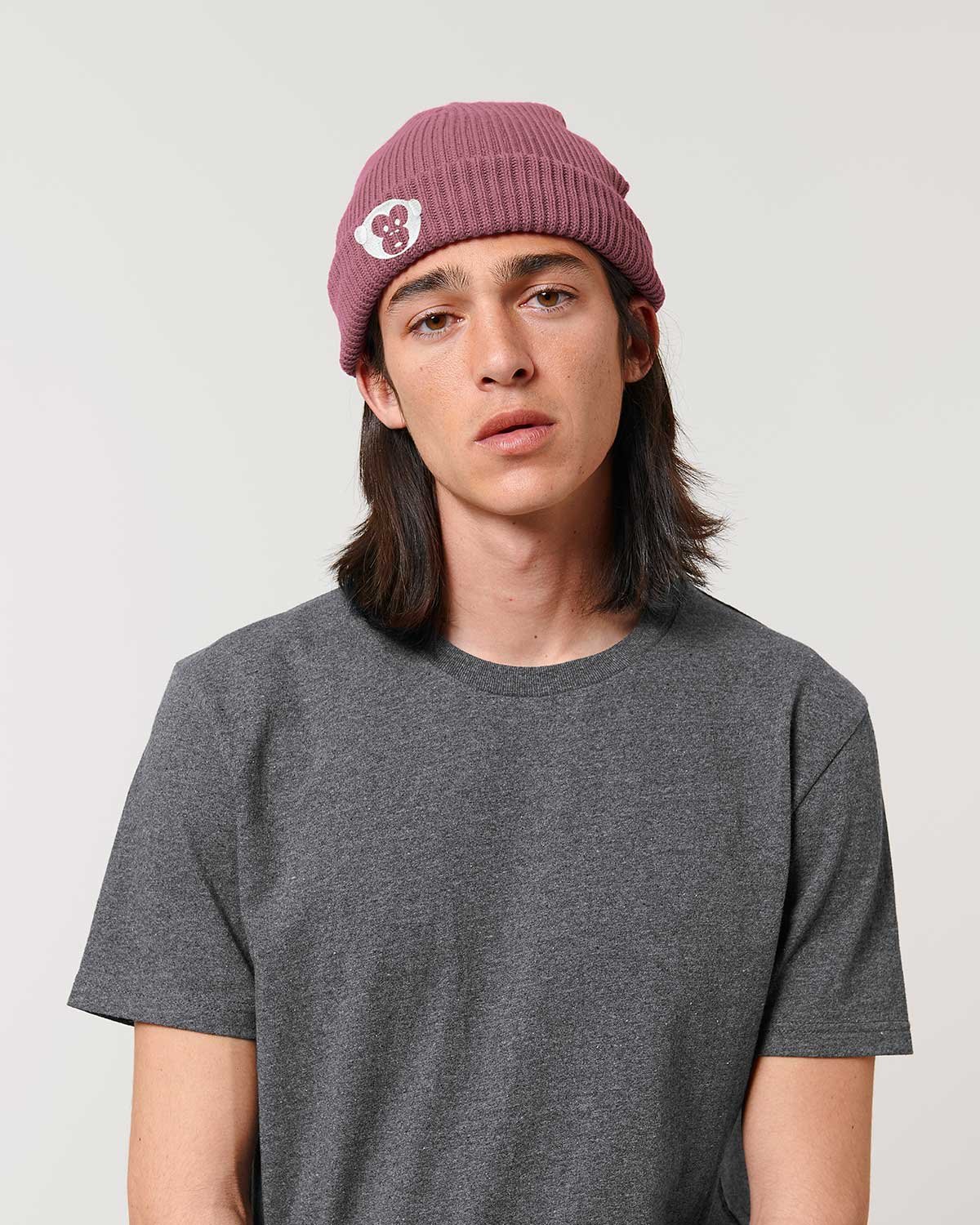 Unisex Beanie mit dem gestickten Monkey Logo, das im Dunklen leuchtet. Der weiche 1×1 Fisherman Rib wurde mit weicher Bio-Baumwolle gestrickt und passt sich durch 4 Nähte oben angenehm an die Kopfform an.