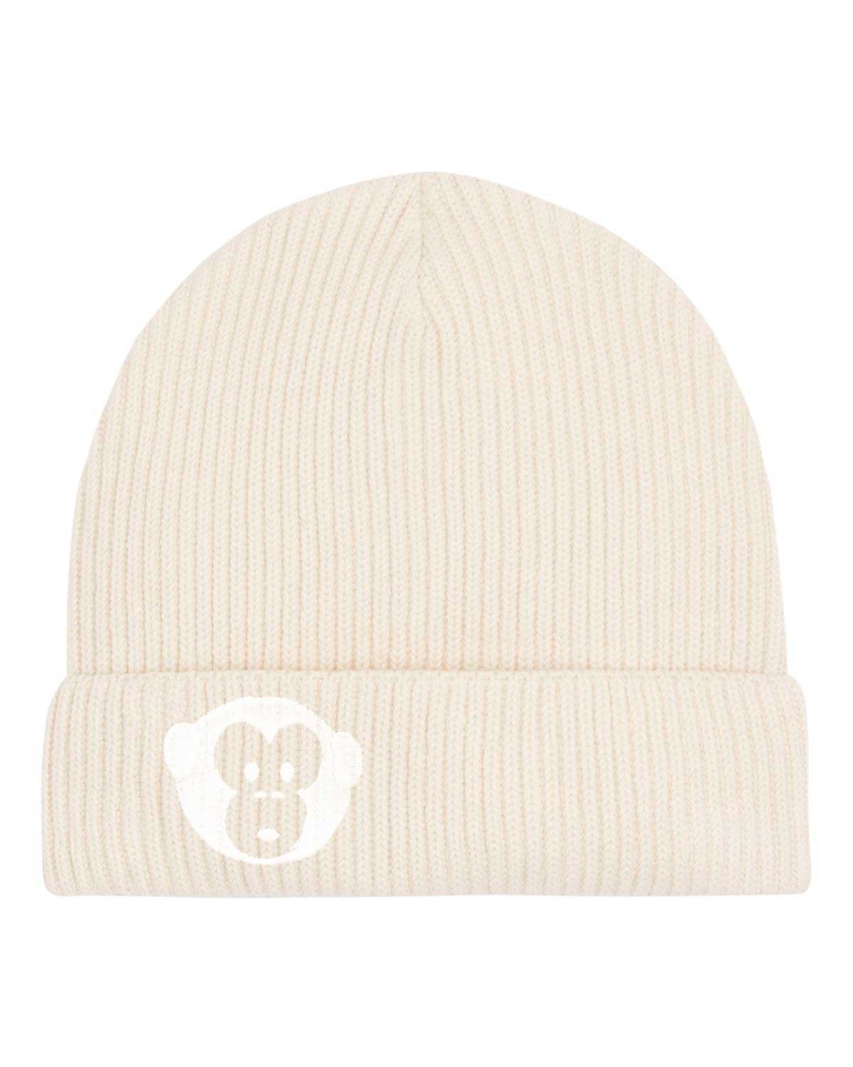 Unisex Beanie mit dem gestickten Monkey Logo, das im Dunklen leuchtet. Der weiche 1×1 Fisherman Rib wurde mit weicher Bio-Baumwolle gestrickt und passt sich durch 4 Nähte oben angenehm an die Kopfform an.