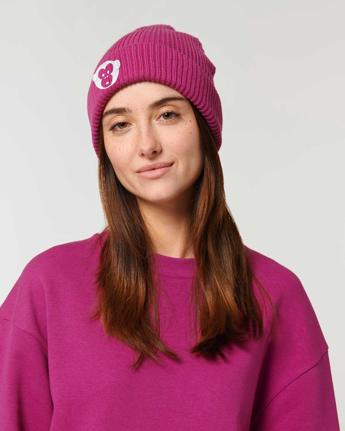 Unisex Beanie mit dem gestickten Monkey Logo, das im Dunklen leuchtet. Der weiche 1×1 Fisherman Rib wurde mit weicher Bio-Baumwolle gestrickt und passt sich durch 4 Nähte oben angenehm an die Kopfform an.
