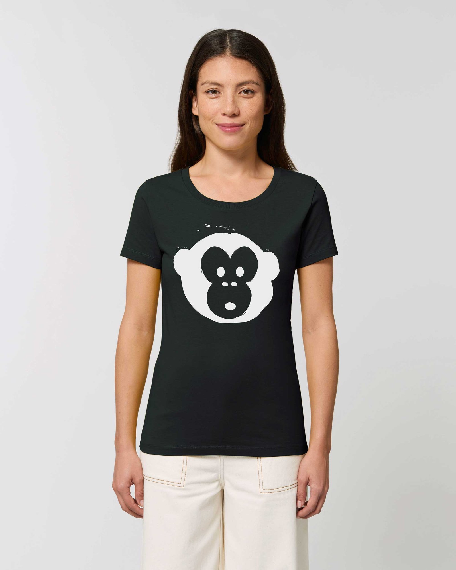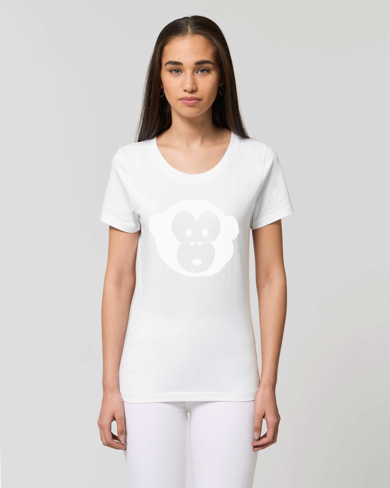 Das Damen T-shirt White Monkey ist anliegend geschnitten und hat kurze Ärmel. Der Rundausschnitt hat ein Rip-Bündchen und ist somit gut dehnbar. Der feine Single-Jersey ist aus 100% Bio-Baumwolle und hat das Fair Wear Gütesiegel. Unser Monkey Logo ist in Weiß gedruckt.