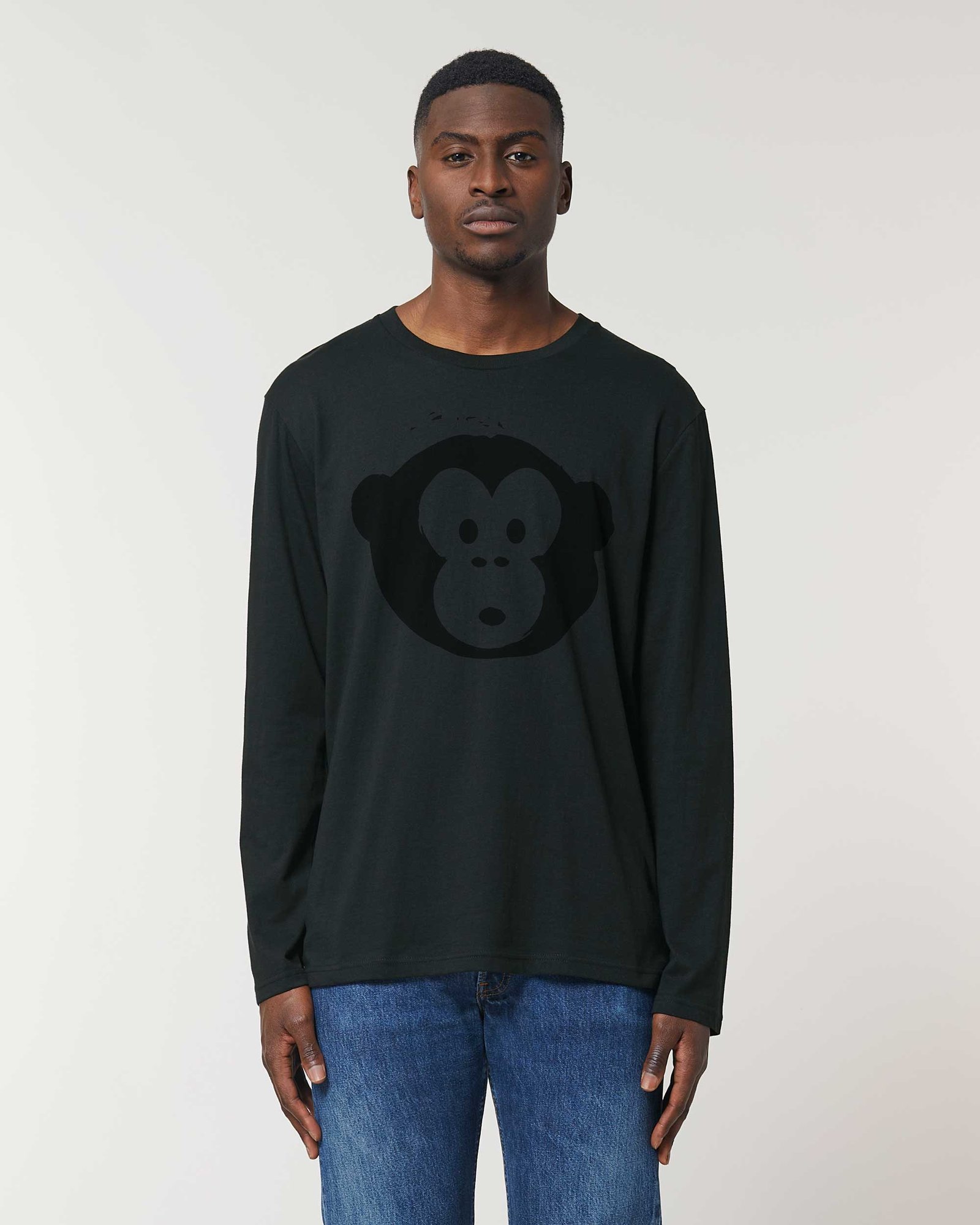 Das Herren Longsleeve Shirt Black Monkey ist locker geschnitten und hat lange Ärmel. Der feine Single-Jersey ist aus 100% Bio-Baumwolle und hat das Fair Wear Gütesiegel. Unser Monkey Logo ist in Schwarz gedruckt.