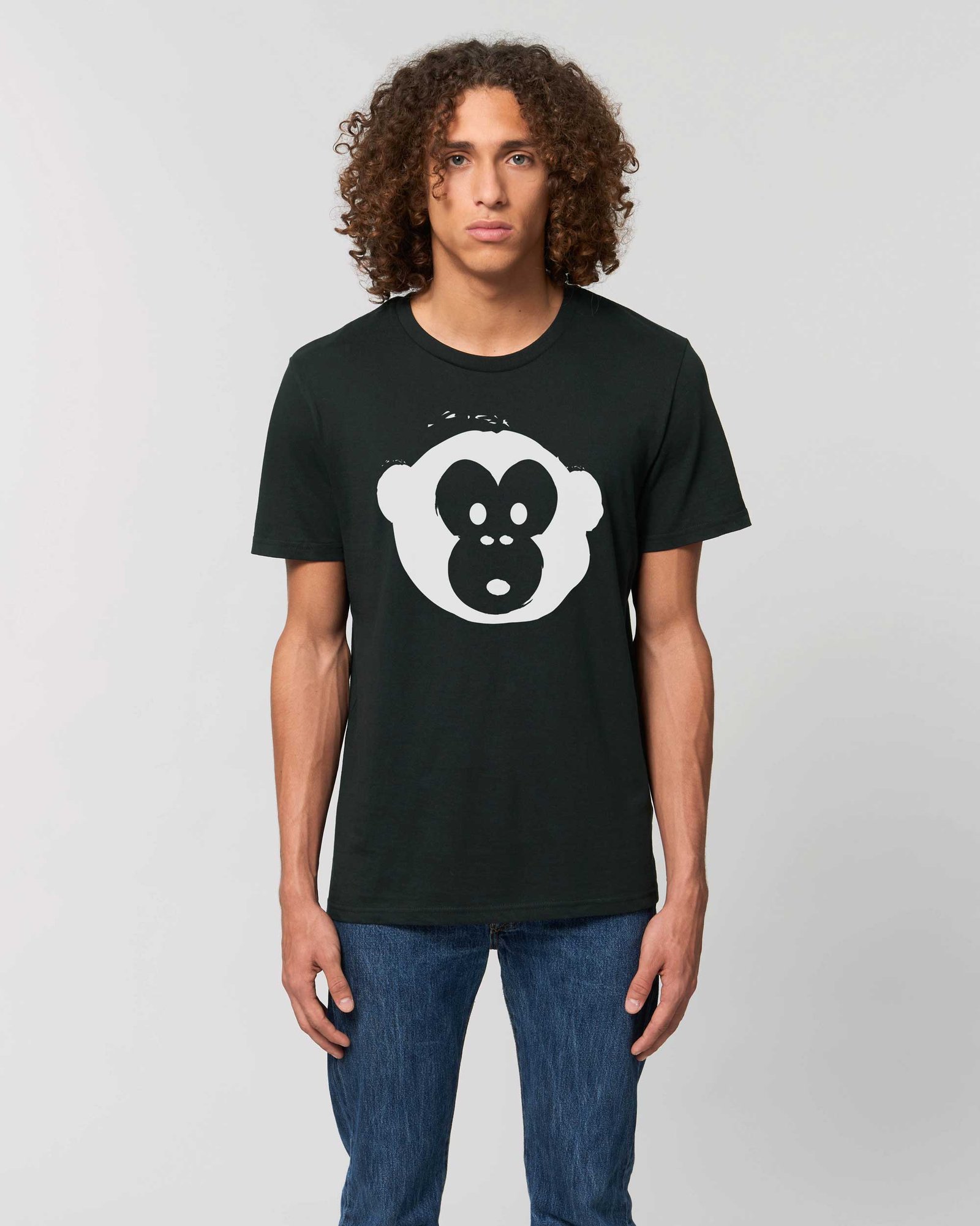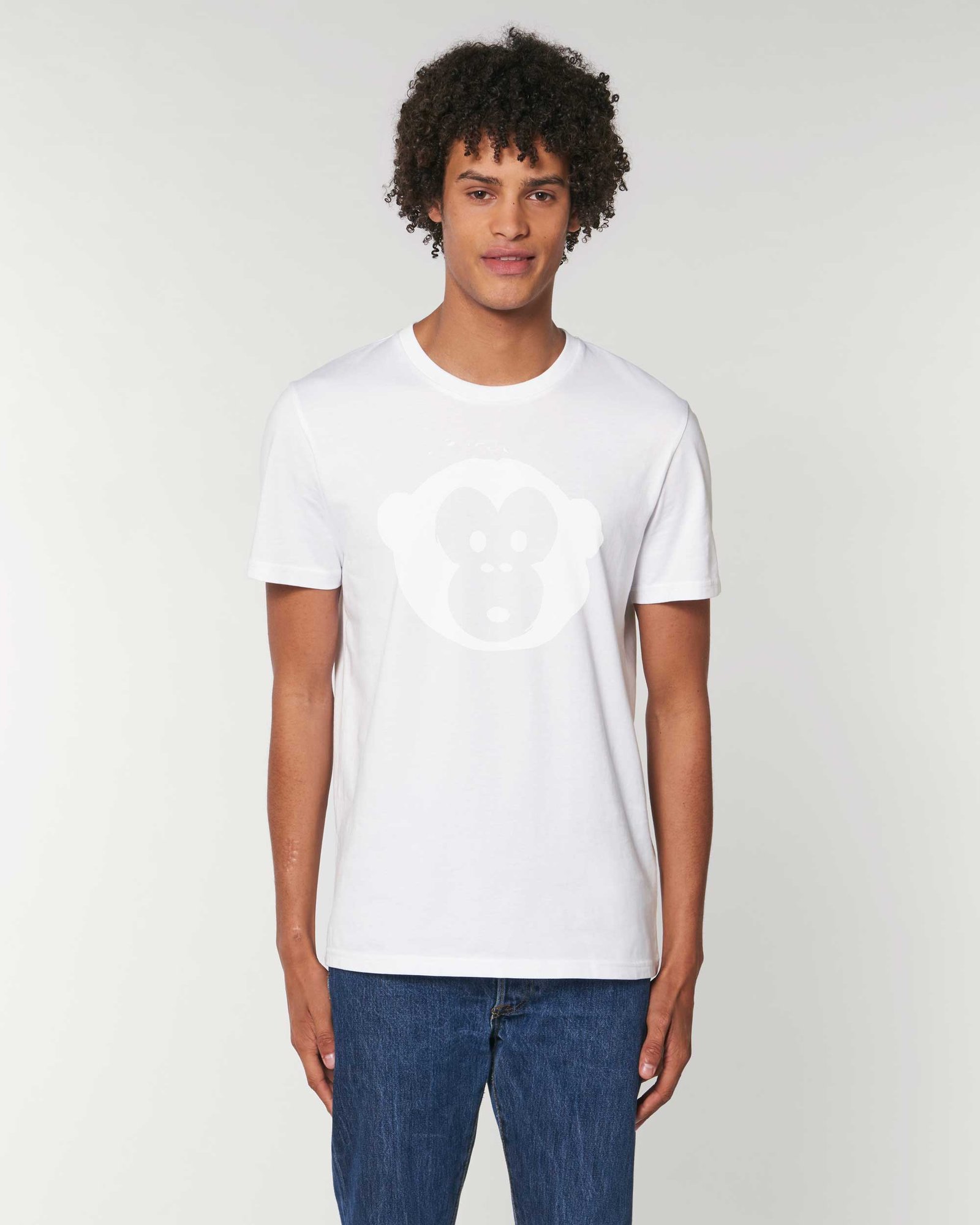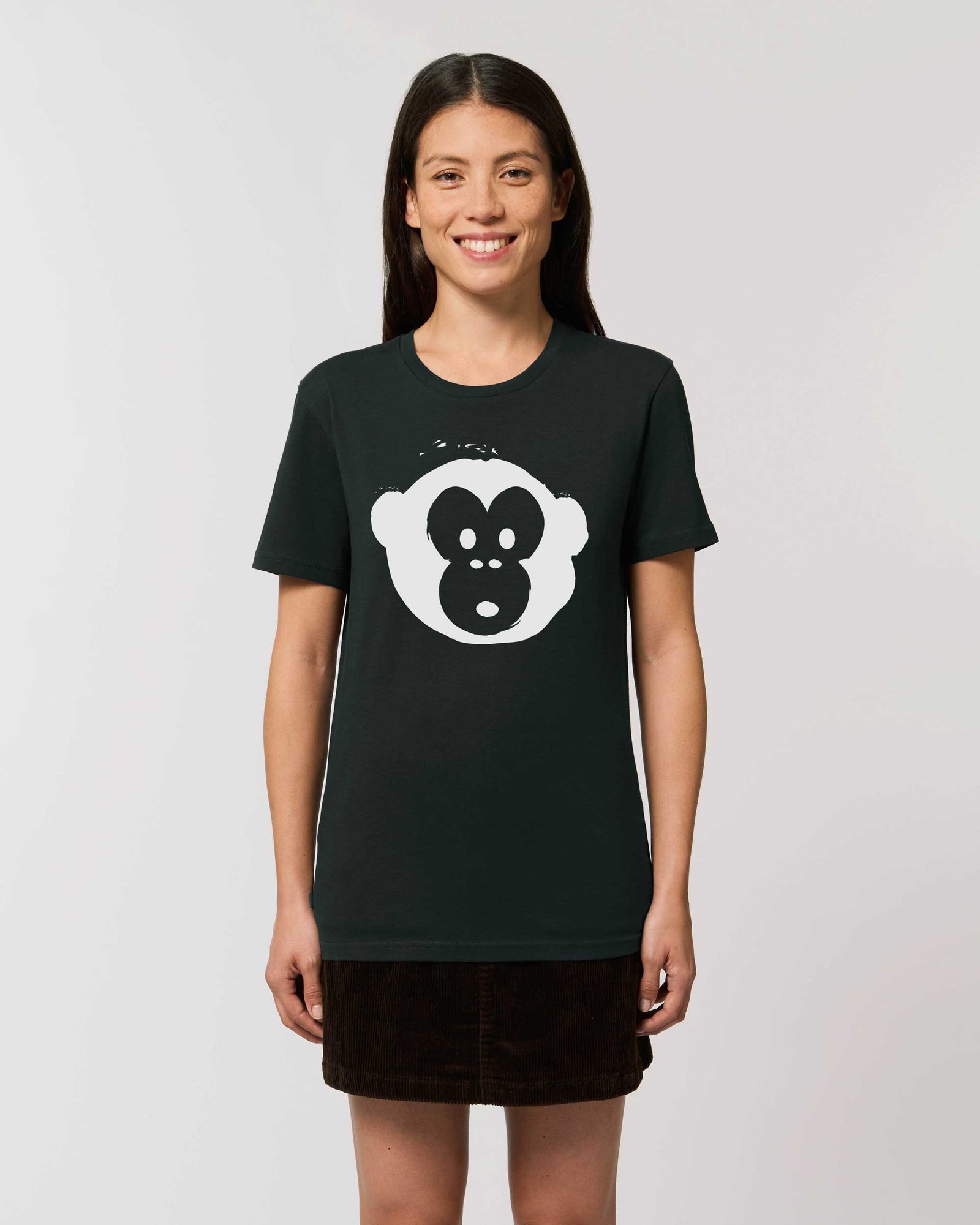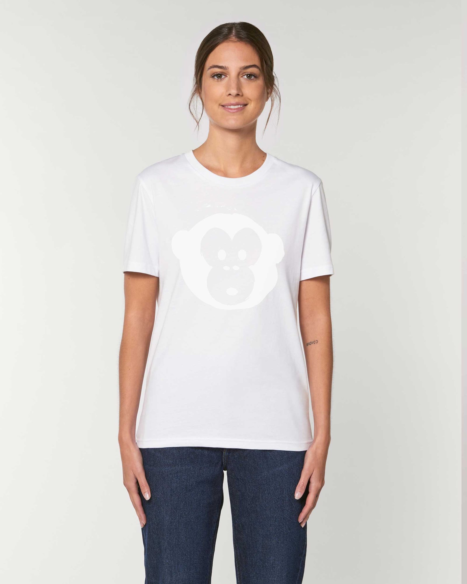 Das Unisex T-shirt White Monkey ist medium fitted und hat kurze Ärmel. Der Rundausschnitt hat ein Rip-Bündchen und ist somit gut dehnbar. Der feine Single-Jersey ist aus 100% Bio-Baumwolle und hat das Fair Wear Gütesiegel. Unser Monkey Logo ist in Weiß gedruckt.
